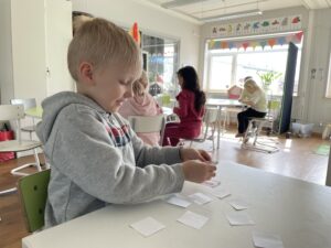 I veckan har vi jobbat vidare med våra 10 kompisar. Detta har vi gjort genom att spela 10 kompis memory och ett tärningsspel där det gällde att lista ut vilken som var 10 kompis till det tal som tärningen visade.