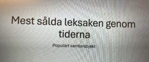 Veckans grej handlade om en väldigt populär leksak som kommer från USA. Nu vet vi att Barbie är en docka som har funnits i 67 år, att Barbie har jobbat som både flygvärdinna och veterinär. Dessutom har det spelats in en film från Barbies drömhus och vår kronprinsessa Victoria har blivit en Barbiedockan. Nu finns det även en Barbie som har hörapparat och någon docka som sitter i rullstol, olikheter är bra !!