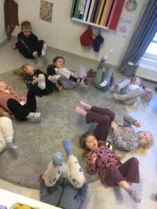 Vårt arbete med alfabetet fortsätter med att bokstäverna C och D introducerades och vi fick äntligen träffa vår lilla bokmask Filur som flyttade in i vårt alfabetshus. Tillsammans med Filur gick vi igenom hur bokstäverna låter, hur de ser ut och vilka ord vi kunde komma på. Vi har såg tittat på bästa bokstaven och barnen har skrivit C och D som ska sitta i deras egna bok. Vi har också haft rörelse där vi först cyklade med benen i luften och sedan dansade till ett rörelseprogram med snögubben Valle.