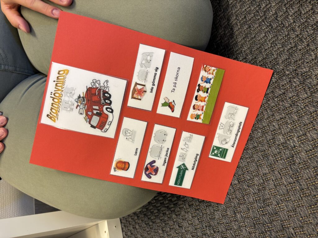 Vi har under veckan förberett barnen genom samtal om brandövningen och övat pĂ„ att ta pĂ„ vĂ„ra stövlar nĂ€r en pedagog slagit pĂ„ brandlarmet. Vi har anvĂ€nt oss av bildstöd och ljud för att simulera vad som skulle hĂ€nda idag nĂ€r brandlarmet sattes igĂ„ng pĂ„ riktigtđ