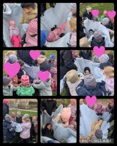 Idag fortsatte vi med brandsäkerhet – en grupp var inne och fick lära sig vad som krävs för att eld ska startas och hur man släcker, de andra grupperna var ute och fick dramatisera en brandutryckning med en hinderbana. Sedan fick de även dramtisera och prova att bära sin ”avtuppade kamrat” med hjälp av en filt och samarbete!