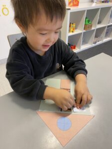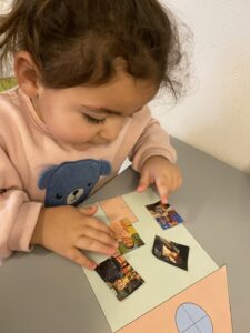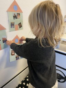 Alla barnen har fått skapa sitt eget hus med sin familj som nu sitter uppe på vår avdelning där barnen kan samlas och prata om sina familjer. Vi gjorde aktiviteten i våra tre lekgrupper och varje barn fick berätta om sina bilder, vem det var på dessa och vilket relation de hade (mamma, pappa, storebror, lillasyster). Barnen fick sedan limma fast bilderna på sin familj på huset och vi körde sedan in huset i lamineringsmaskinen. Ett barn tyckte att det var som trolleri att fickan gick in mjuk men kom ut hård. Barnen satte sedan upp sina hus i vår bilhörna och kan nu köra och hälsa på alla familjerna.