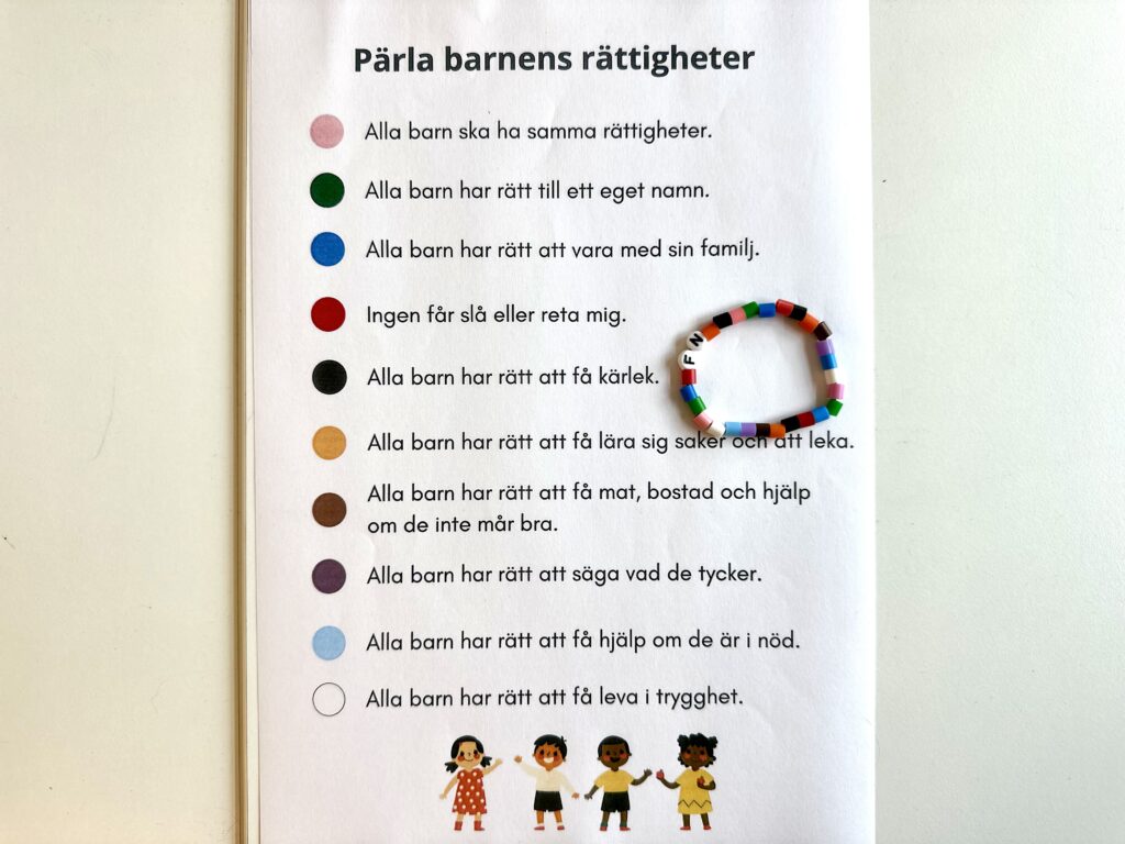 Idag uppmärksammade vi FN-dagen. Vi började dagen med att prata om vad FN är och vad det står för. Vidare träffade vi våra fadderbarn i förskoleklassen. Vi pärlade armband där varje pärla hade en viktig mening. Barnen hjälptes åt och fina armband växte fram. Efter rasten träffade vi våra faddrar. Vi lekte olika lekar tillsammans där samarbete och skratt testades. Dagen avslutades med en härlig allsång, hela skolan tillsammans. En fin dag, helt enkelt!