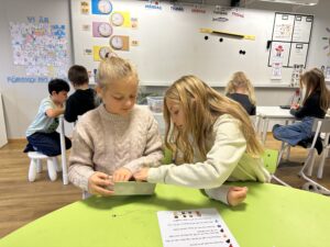 Idag uppmärksammade vi FN-dagen. Vi började dagen med att prata om vad FN är och vad det står för. Vidare träffade vi våra fadderbarn i förskoleklassen. Vi pärlade armband där varje pärla hade en viktig mening. Barnen hjälptes åt och fina armband växte fram. Efter rasten träffade vi våra faddrar. Vi lekte olika lekar tillsammans där samarbete och skratt testades. Dagen avslutades med en härlig allsång, hela skolan tillsammans. En fin dag, helt enkelt!