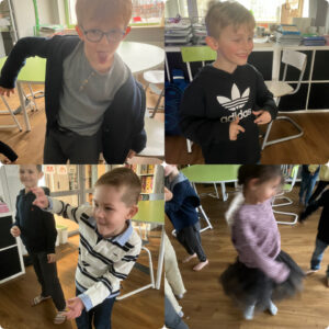 Vi har lekgrupper där vi gör olika aktiviteter. En grupp är just nu att göra ett eget seriealbum och en annan grupp spelade Mastermind. Vi skriver i vår loggbok varje fredag där vi repeterar allt vi gjort under veckan och ritar eller skriver i denna bok. Dagen avslutades med rörelselekar inomhus då det hade varit väldigt blött ute idag. Vi lekte Hattleken, Hela havet stormar och till slut dansstopp. Trevlig helg!