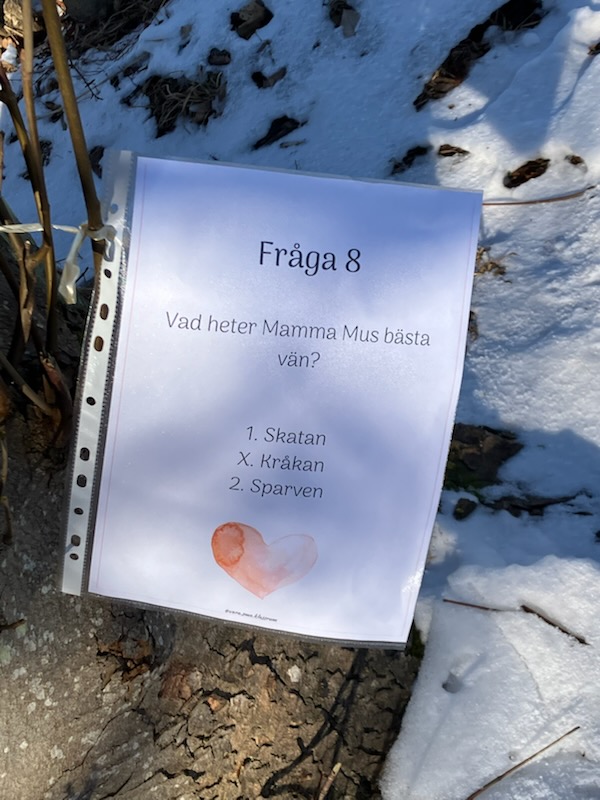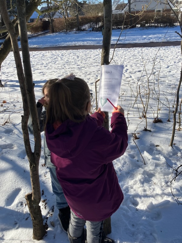 Idag bytte vi ut soffmyset mot rörelse och frisk luft! Vi har nÀmligen anordnat en stor tipspromenad för alla elever ute i vÄrt nÀromrÄde. Solen (eller i alla fall dagsljuset!) var med oss nÀr vi gav oss ut för att lösa veckans utmaningar. Det var hÀrligt att se hur eleverna samarbetade i smÄ grupper, diskuterade svaren sÄ att det glödde i kinderna och hjÀlptes Ät att hitta nÀsta sifferlapp bakom trÀdstammar och buskar.