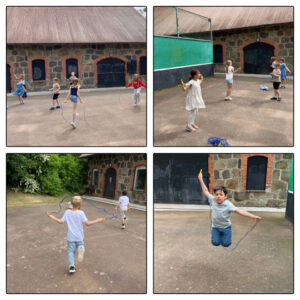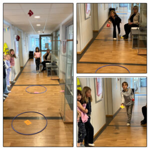 Vi fortsätter med hopprepsutmaningen och vårt Kvadratenmästerskap. Idag skulle man försöka pricka in en ärtpåse i en rockring. Många poäng delades ut!