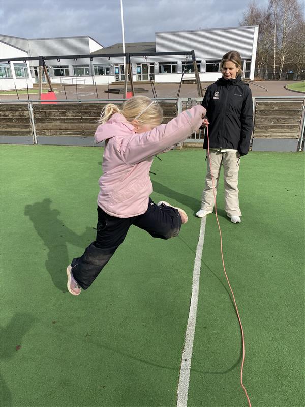 Idag förvandlades multiarenan till en riktig hopp-zon! Trots att molnen hängde lite i luften var energin på topp när eleverna utmanade både sig själva och varandra i olika hopp-lekar.