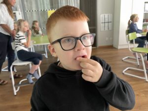 Idag var det dags för förskoleklassens första grej of the day. Eleverna har fått lära sig massor om en bil som inte har broms och är Sveriges mest sålda bil, nämligen Ahlgrens bilar. Nu vet vi att Ahlgrens bilar har varit i rymden, att dessa bilar tillverkas i samma fabrik som vissa berömda skumtomtar och ett väldigt gott kexchoklad. Dessutom har vi lärt oss att det var två brödrar som ville göra marschmellows, men de lyckades inte riktigt. Skumbitarna blev för korta,