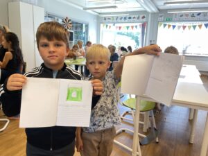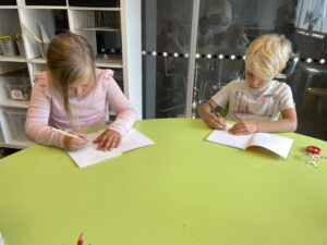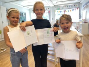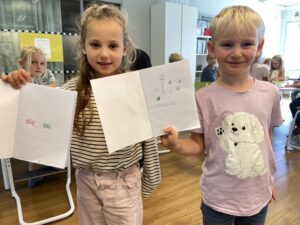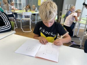 Efter presentationen fick eleverna rita i sina böcker vad de hade lärt sig angående just dessa goda färgglada bilar.
