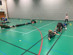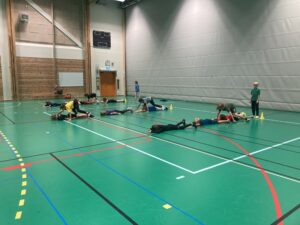 Första idrottslektionen inne bestod av samarbetsövningar!