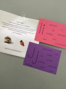 Våra aktiviteter denna vecka har varit att träna på att skriva I och J och att komma på ord som börjar på dessa bokstäver. Barnen tyckte det var lite svårt att komma på ord på J då vissa ord som börjar på hj låter som J tillexempel hjärta, hjälm och hjälp. Vi tittade också på bästa bokstaven och där fick vi tillsammans träna på att ljuda bokstäverna.