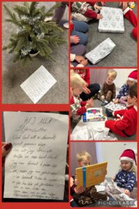 Idag var det julfest 🎉 Vi började med att dansa runt granen tillsammans med mångubben. Sedan kände visst Tomten för att hälsa på lite 🤭 Efter vi hälsat på Tomten och sett honom dansa för oss så gick vi in. Barnen var lite besvikna att vi inte fick några julklappar.. men när vi kom in var där ett brev från Tomten, han hade gömt våra julklappar i lekhallen. Hela 6 klappar hittade vi!!☺️ Vi avslutade med god jullunch