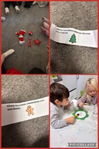 Från och med 1 december flyttade Nisse in och då fick vi nytt uppdrag varje dag av honom. Vi har fått pyssla snölyktor, skapa snögubbar, leka kims lek, räkna hur många det är kvar till julafton med mera.