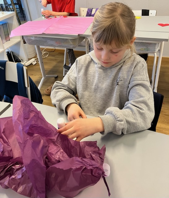Inför Alla hjärtans dag har vi förvandlat pysselrummet till en riktig kärleksfabrik! Eleverna har skapat klassiska fantasfulla hjärt-dekorationer. Det är fantastiskt att se hur de inspirerar varandra.
