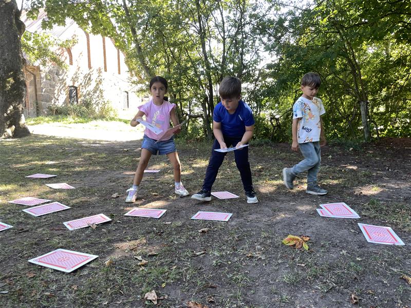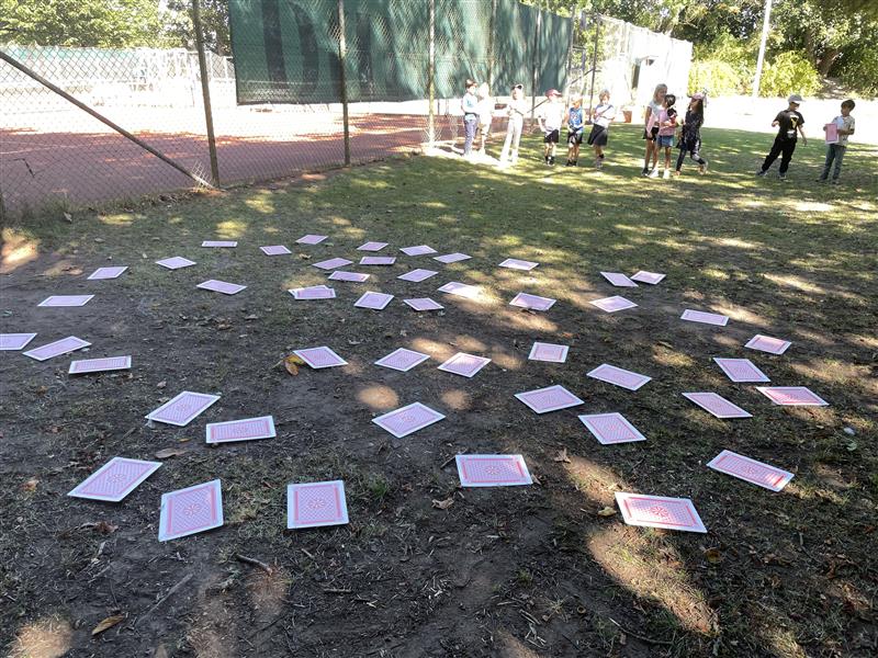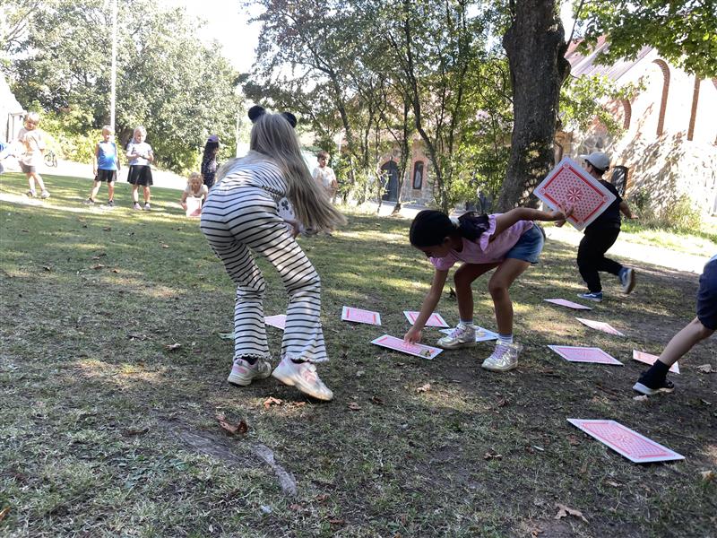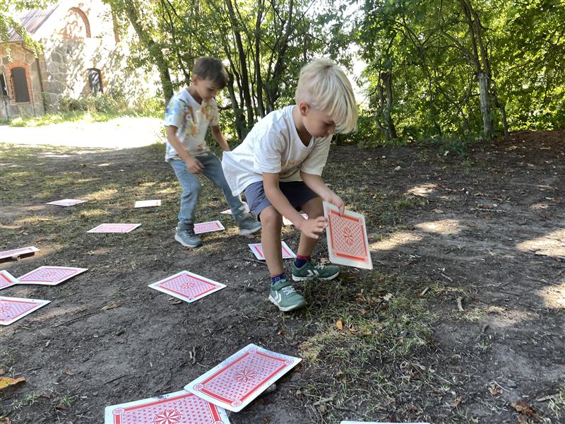 Vi leker kortleksleken på Cirkeln. En typ av stafett där det gäller att hitta ”sin” färg.