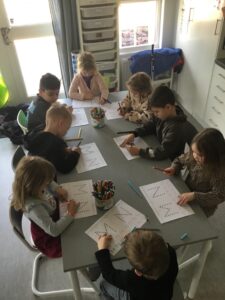 Skapande av M och N gjordes med hjälp av glasspinnar, lim, glitter och ögon. Barnen fick välja om de ville skapa M eller N och sen var det fritt fram att dekorera den valda bokstaven.