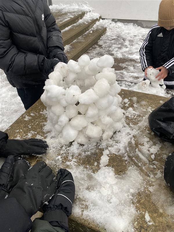 Med spadar, hinkar och massor av entusiasm gav sig eleverna ut för att samla snö och bygga. Det var härligt att se hur kreativa och samarbetsvilliga de var när de formade snön till olika storlekar och former. Varje lykta fick sin egen unika karaktär!