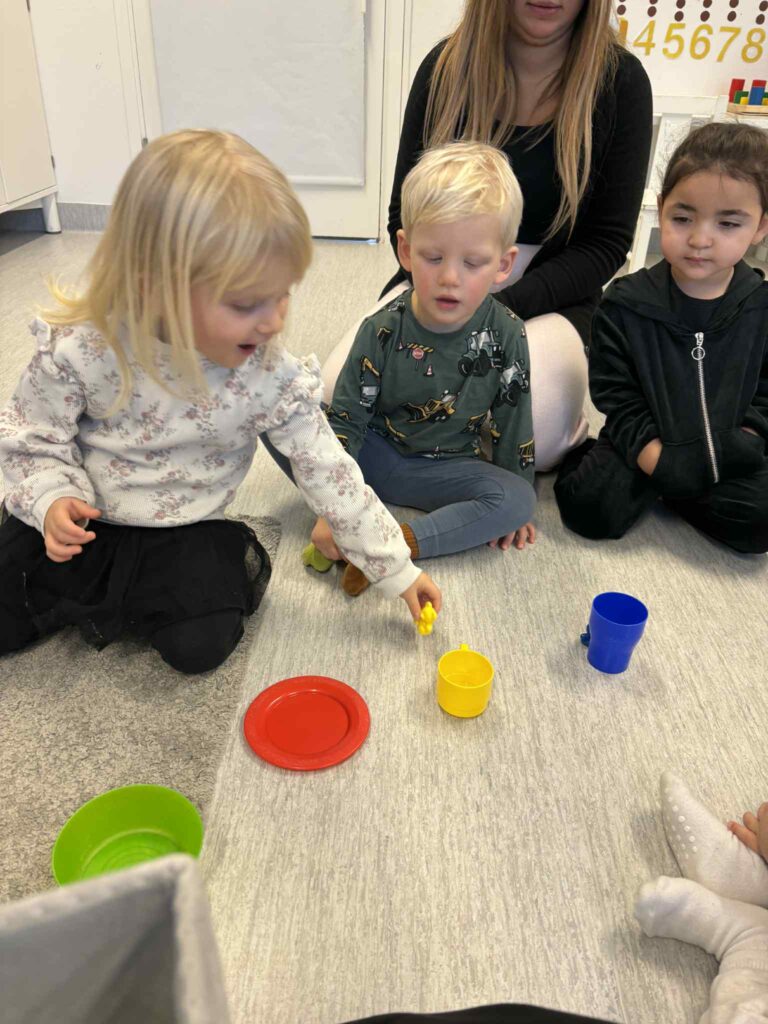 Vi har matematikaktiviteter i halvgrupp som ser olika ut men vi har valt att starta med olika nallar som har olika färger då dessa har varit med i aktiviteter tidigare och därav känns igen av barnen.