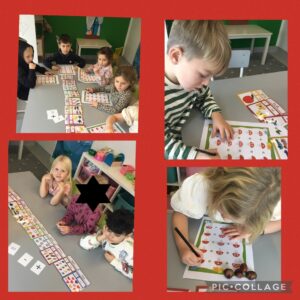 Under veckan har barngruppen haft undervisning kring matematik och flugsvampen. Vi kom tillsammans fram till att flugsvampen har prickar och de har olika många prickar. Vi skapade sedan en undervisning med de i åtanke där barnen först fick räkna och känna igen siffror sedan fick de rita prickar på sin egna flugsvamp som siffran visade. Vi pratade även kring vad olika tecken inom matematik betyder. Minus, subtraktion (ta bort) och plus, addition (lägga till).