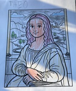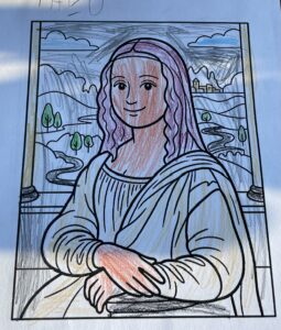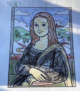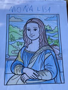 Eleverna fick färglägga sin egen Mona Lisa på sitt egna lilla vis, och visst blev dom fina.