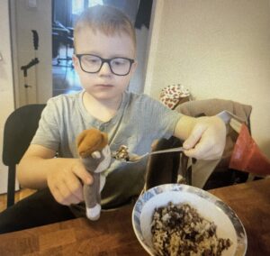 Idag fick vi träffa vår vän Pelle igen. Under helgen har han varit hemma hos en pojke i klassen och tillsammans har de hittat på många roliga saker. Pelle fick följa med och handla och han fick vara med när pojken spelade tv-spel. Dessutom har Pelle fått smaka ostbågar och köttfärs med ris, och naturligtvis har Pelle även fått borstat sina tänder riktigt noga. Men att åka linbana i Ängelholm är något Pelle gärna vill göra fler gång