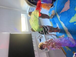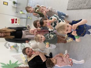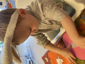 Igår hade vi påskfest på Solstrålen! Vi började dagen utomhus på gården med frukt innan påskharen kom dansande förbi med ett stort påskägg till oss. När vi kom in samlades vi för att öppna ägget och läsa brevet från påskharen. Där stod det att han hade skickat med lite påskpyssel till oss och gömt små påskägg på avdelningen som han ville vi skulle leta upp tillsammans. Sagt och gjort så letade vi upp tio små påskägg. Därefter samlades vi i mindre grupper och limmade silkespapper på utklippta påskägg. Sen var det dags för det årliga påskdiscot innan det dukades fram påskbuffé. Vi vill passa på att önska alla en riktigt glad påsk!