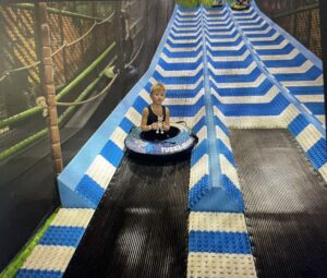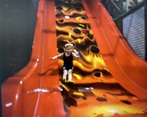 Äntligen fick vi träffa Pelle igen som under några fartfyllda dagar varit hemma hos en av pojkarna i klassen. Pelle fick följa med ett roligt lekland där han fick hoppa studsmatta och åka en riktigt snabb rutschkana. Att få vara med på familjens fredagsmys, var något som Pelle tyckte om. Att titta på ”bäst i test” och bada i ostbollar kan väl inte bli bättre ?