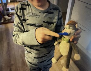 Så fick vi äntligen träffa Pelle igen. Under några dagar har han varit hemma hos en av pojkarna i klassen och tillsammans har de hittat på en massa skoj. Pelle har fått åka legoteknikbil, han har fått följa med hem och fikat hos pojkens farfar. Dessutom har Pelle fått följa med till kyrkan där han fått leka med kaplastavar. För första gången har Pelle fått testa på att åka luftballong, och det tyckte han var riktigt roligt. Ett nytt spännande boktips fick vi också !!