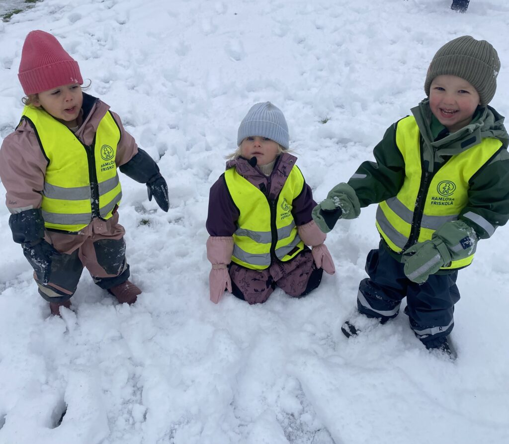 Vi har under den senaste veckan njutit av snön här på förskolan. Trots att det har varit kallt och halt till och från har både barn och pedagoger haft kul i snön.