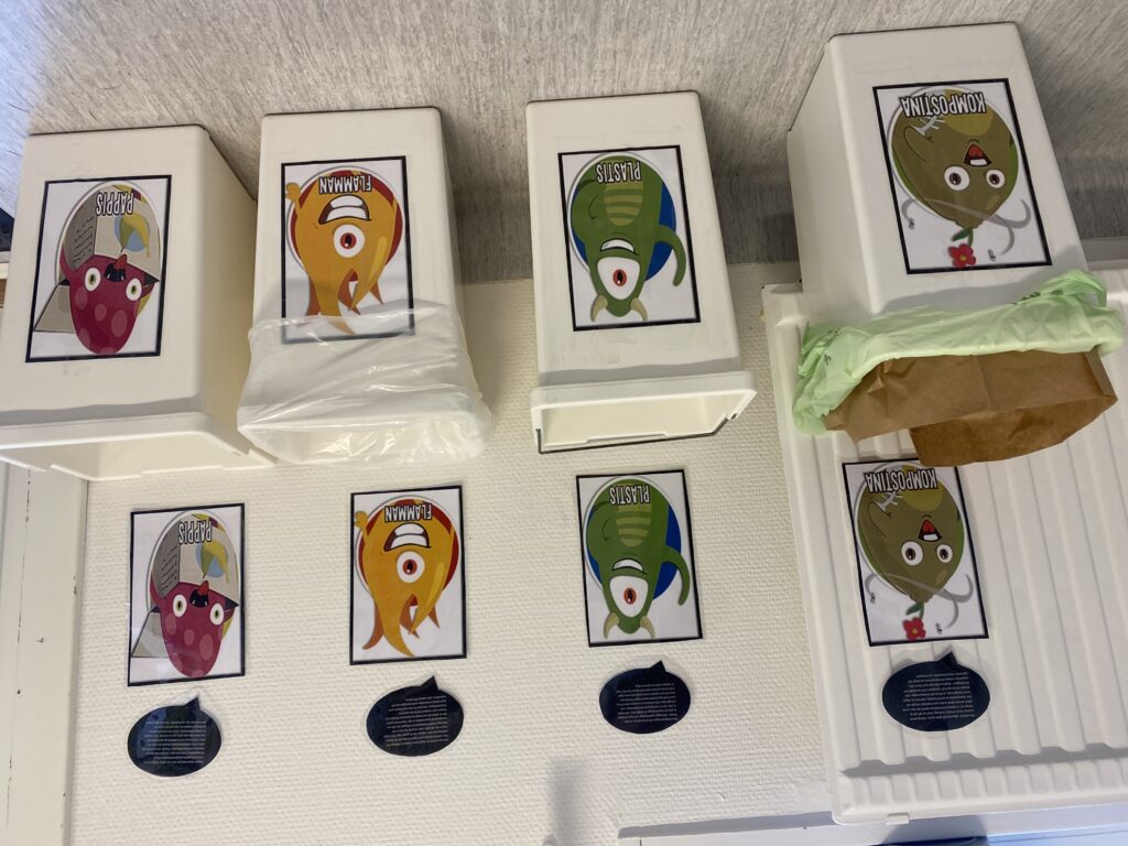Vi ser redan efter en vecka att några barn har bekantat sig med de olika monstren och kan berätta för oss pedagoger och sina kompisar vilka sopor som ska slängas i vilken hink.