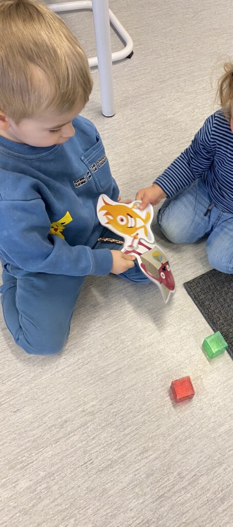 Vi introducerade monstren genom att läsa ”Lilla monsterboken” där monstren presenterades i stora drag och sedan gick vi igenom vår sopstation där våra fyra sopsamlarmonster är uppsatta. Vi har även monstren i lekmiljön för att ge barnen fler möjligheter att bekanta sig med dem.