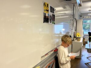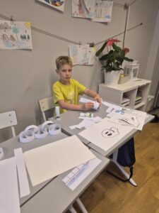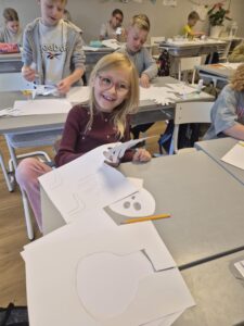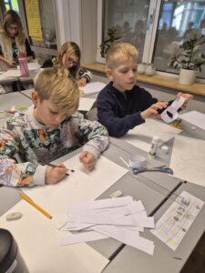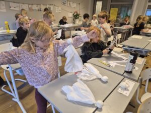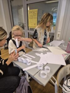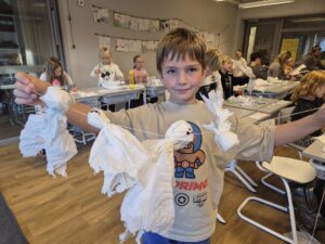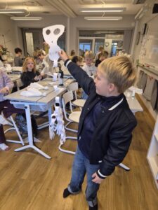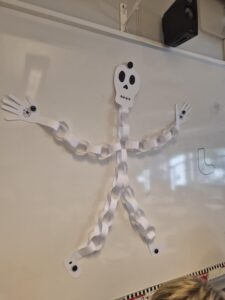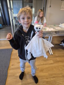 De har också fått göra halloween pyssel i form av spöken och skelett.