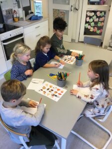 Då flera barn hittade svampar i skogen när vi var där valde vi att skapa undervisning kring detta. Barnen fick lära sig grunderna för hur en svamp är uppbyggd och sedan fick de rita egna svampar.