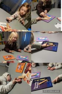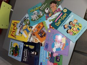 Denna veckan har vi berättat för barnen att böckerna är inköpta och igår delade vi gruppen i två. De fick där samla sig kring böckerna som kompisar i den andra gruppen bidragit med, under hösten 2025. De fick efter vars en röst som de fick lägga på den boken de först ville undersöka och lyssna på. Sedan läste vi de böcker för barnen.