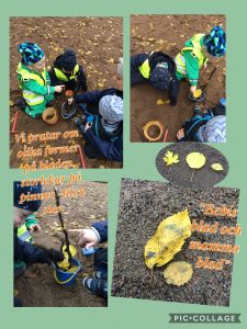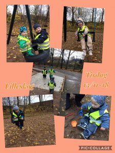 I förmiddags var småstjärnorna i Lilleskog där vi gungade, grävde i sanden och bakade tårta. Vi pratade om olika begrepp, liten stor, gunga fort och sakta.