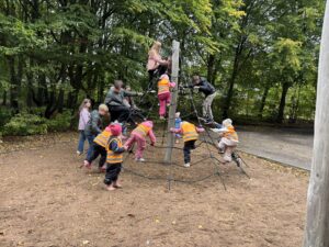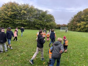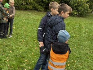I veckan träffade vi vår kompisklass från Regnbågen. Vi lekte kurragömma och ”alla ekorrar byter bo” i Lilleskog. Det blev en rolig och fartfylld träff.