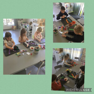 Vi har skapat U och V. Barnen fick välja en bokstav som de sedan pysslade ihop till en liten figur. Kul att se alla projekt på väggarna.