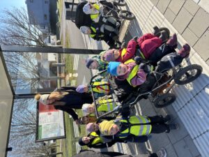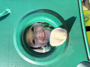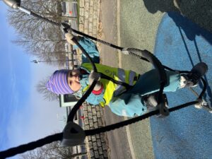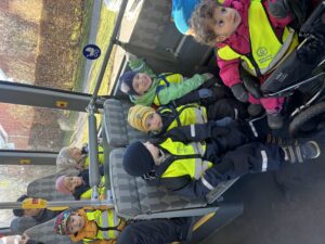 Torsdagen den 9/4 var det äntligen dags för oss på Solstrålen att åka på utflykt. Vi tog först bussen ner till Elineberg för att byta till nästa buss mot Kärnan. Väl framme var hela lekplatsen avspärrad pga målning…. Så vi satte oss och åt frukt samtidigt som vi fick planera om!