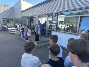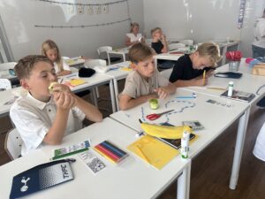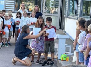 Det var skönt att komma igång efter lovet även om det var lite svettigt idag… Vi har hunnit med att göra bokmärken med snodd, ha ceremoni för förskoleklassen, låna böcker i vårt nypiffade bibliotek och göra en samarbetsövning som inkluderade jonglerbollar. Det blev en bra uppstartsdag för åk 5. Imorgon fortsätter vi med tema värdegrund, vi ska bland annat träffa vår fadderklass.