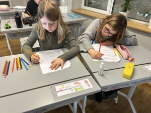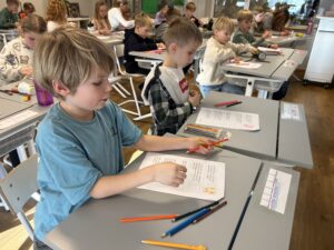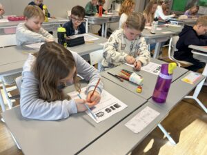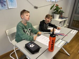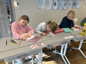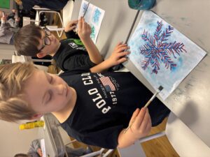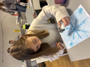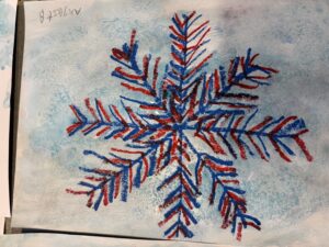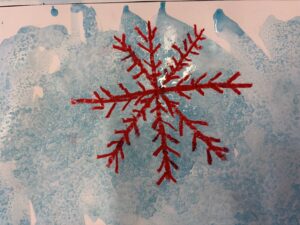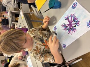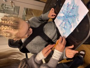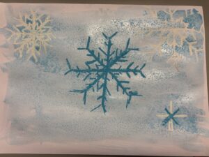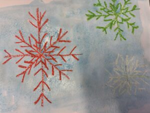 Nu är vi igång ordentligt. På bilden har vi gjort fina vinterbilder med hjälp av pastellkritor, målarfärg och salt.