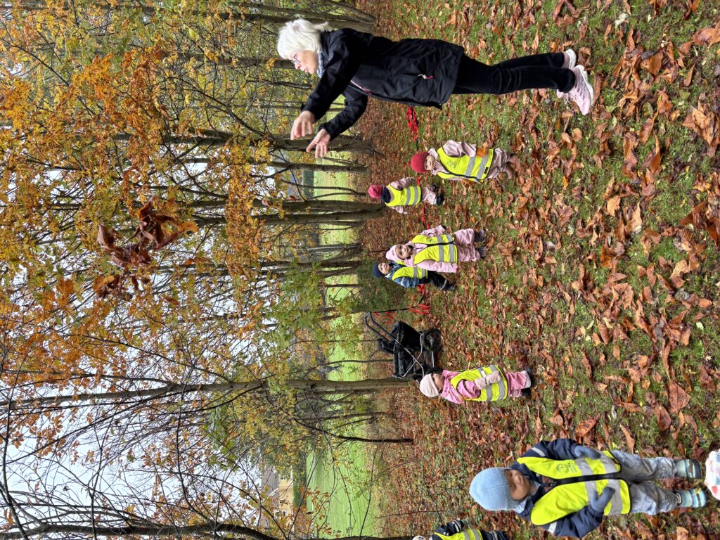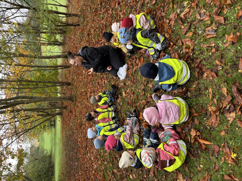 Efter samarbetsövningen samlade vi löv som vi under ett senare tillfälle skapade en hösttavla av. Vi letade också upp kastanjer som vi har dekorerat avdelningen med. Vi passade på att prata om kastanjen och hur den ser ut när den hänger i trädet kontra hur den ser ut när den har trillat ner och ut ur sitt skal.