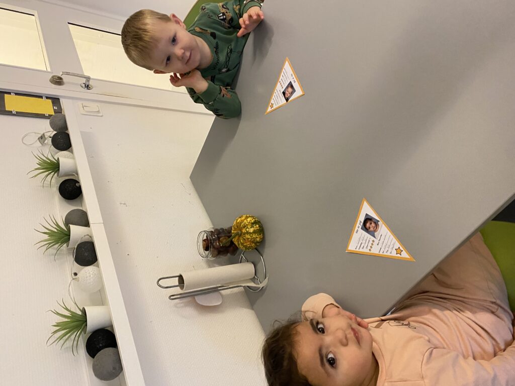 Vi har tillsammans på solstrålen skapat en girlang som nu pryder vår avdelning. Varje vimpel representerar varje barn och pedagog som går på solstrålen. ”Här är jag” är titeln på vimpeln och alla barnen har fått vara med och skapa sin egen.