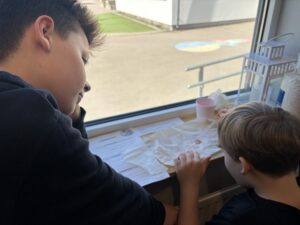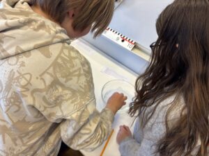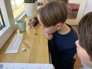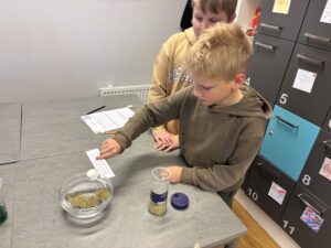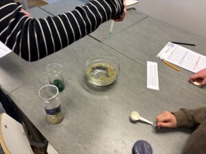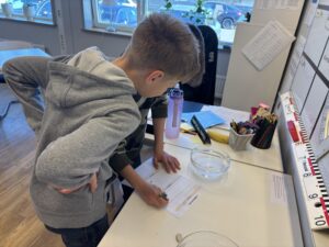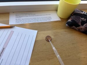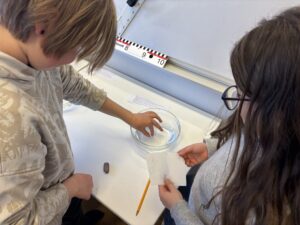 Vi jobbade på olika stationer: få gem att flyta, oregano på vattenytan, känna med handen på ytspänning och vattendroppar på mynt.